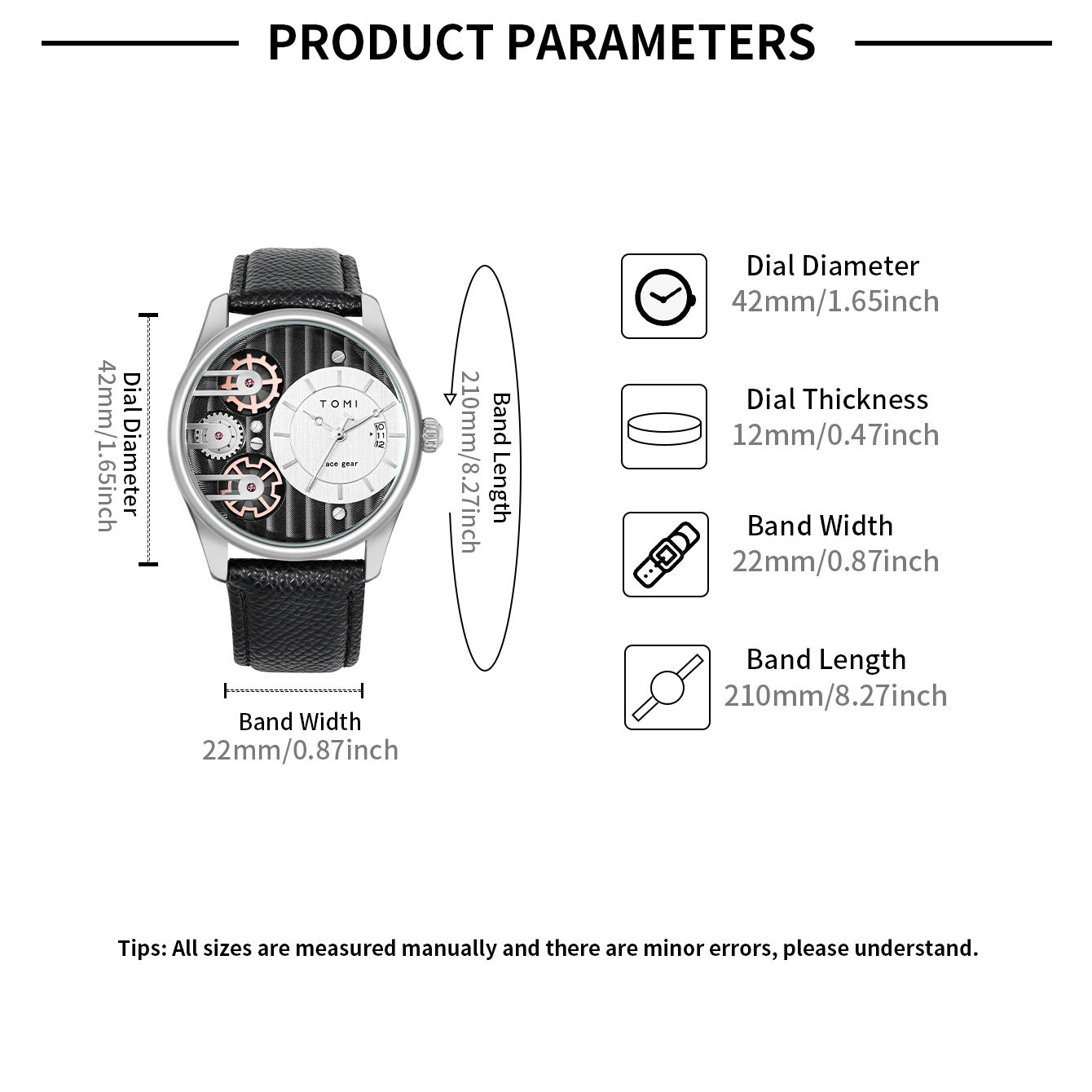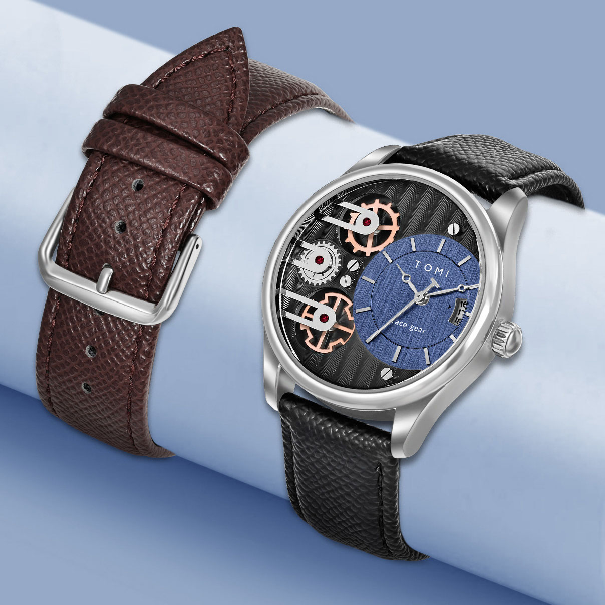 ⌚ TOMI T-106-4 Face Gear Dual Strap Leather Watch