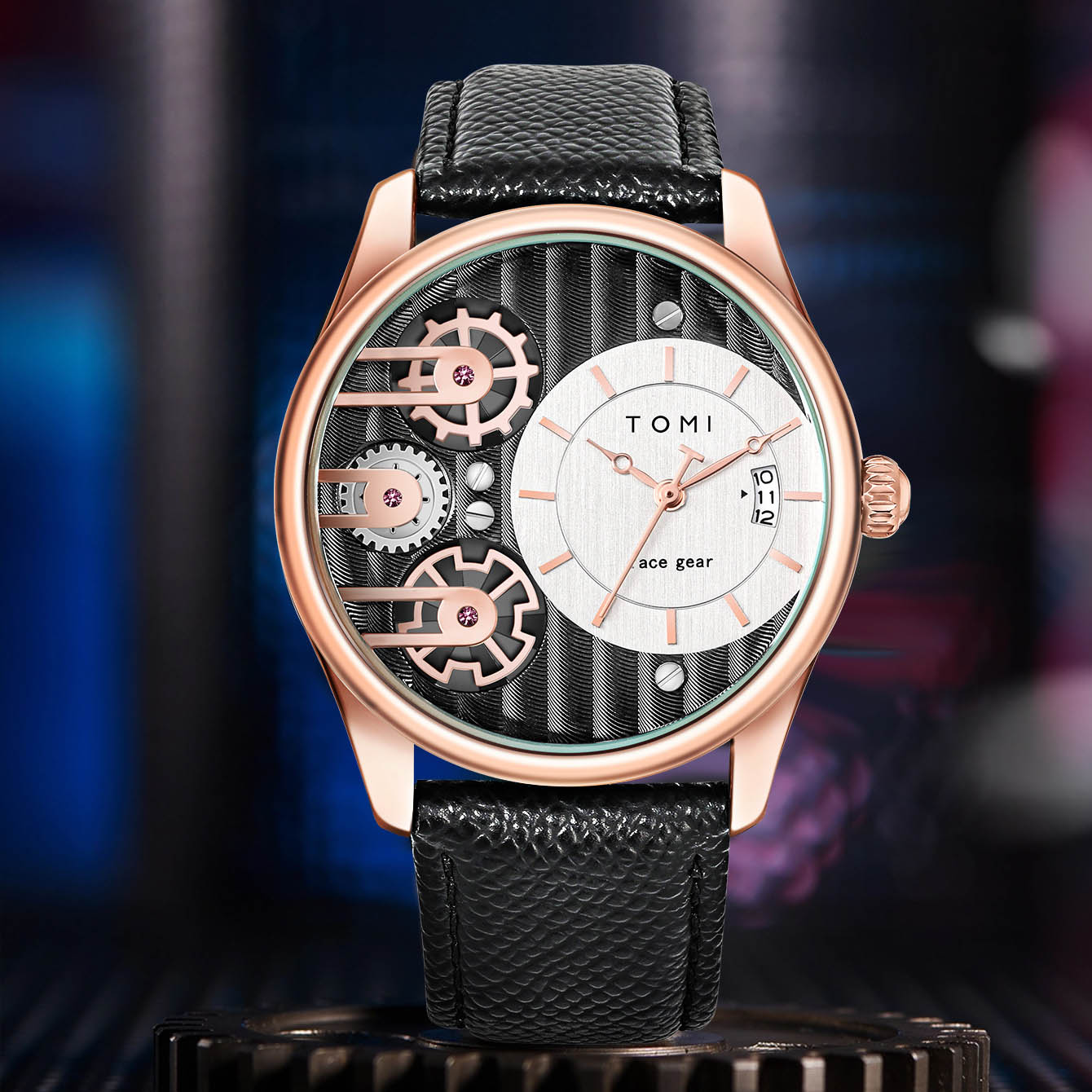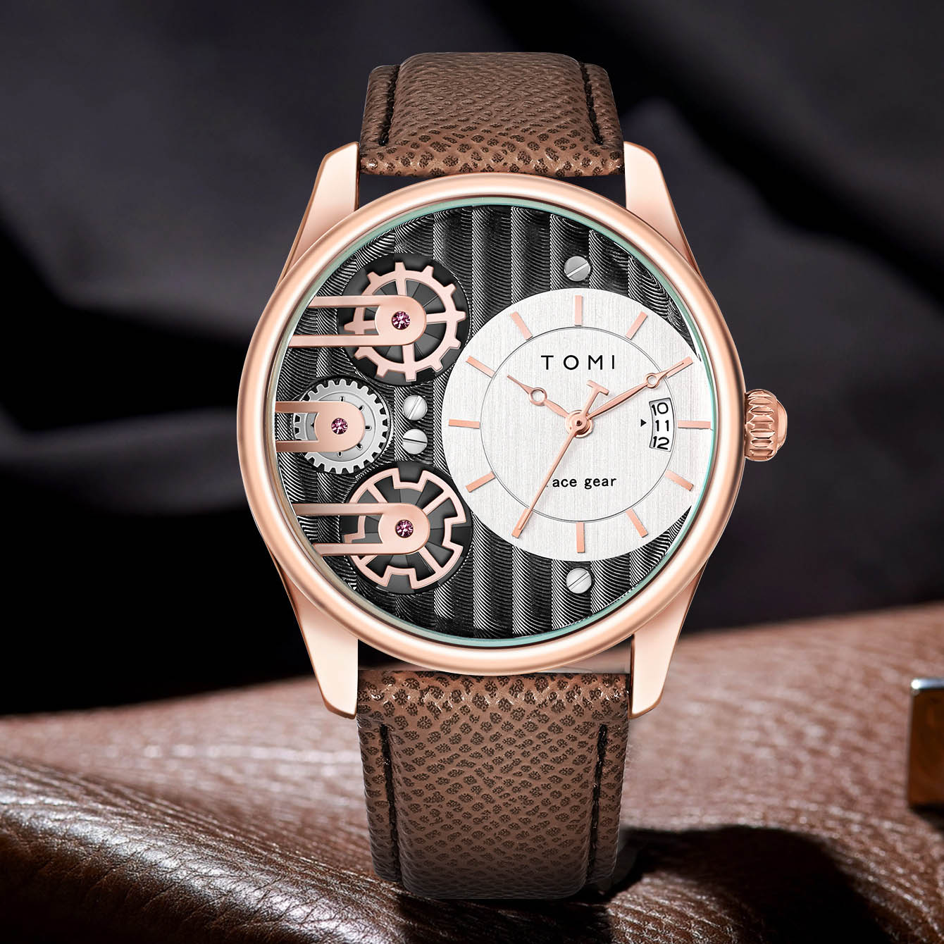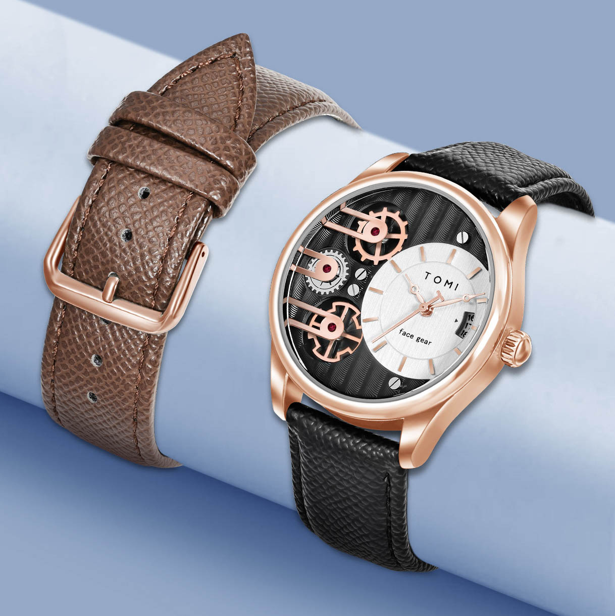 TOMI T-106-6 Face Gear Dual Strap Leather Belt Watch একটি ইউনিক ও আধুনিক ডিজাইনের লাক্সারি ওয়াচ, যা আপনার স্টাইলকে আরও আকর্ষণীয় করে তুলবে 😎।